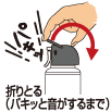 | ● 使用開始時に天面のストッパーを上におこしてパキッと音がするまで後ろの方に曲げて折りとってください。 ● クモの駆除に使用する場合は、直接クモに噴射する。 ● クモに巣を張られたくない場所に、表面が十分濡れる程度噴射する。 ● クモの巣がある場合は、クモの巣を取り除いてから噴射する。 ● クモがいる場合は、クモに向けて直接噴射して退治した後、巣を取り除いて噴射する。 ![]() |